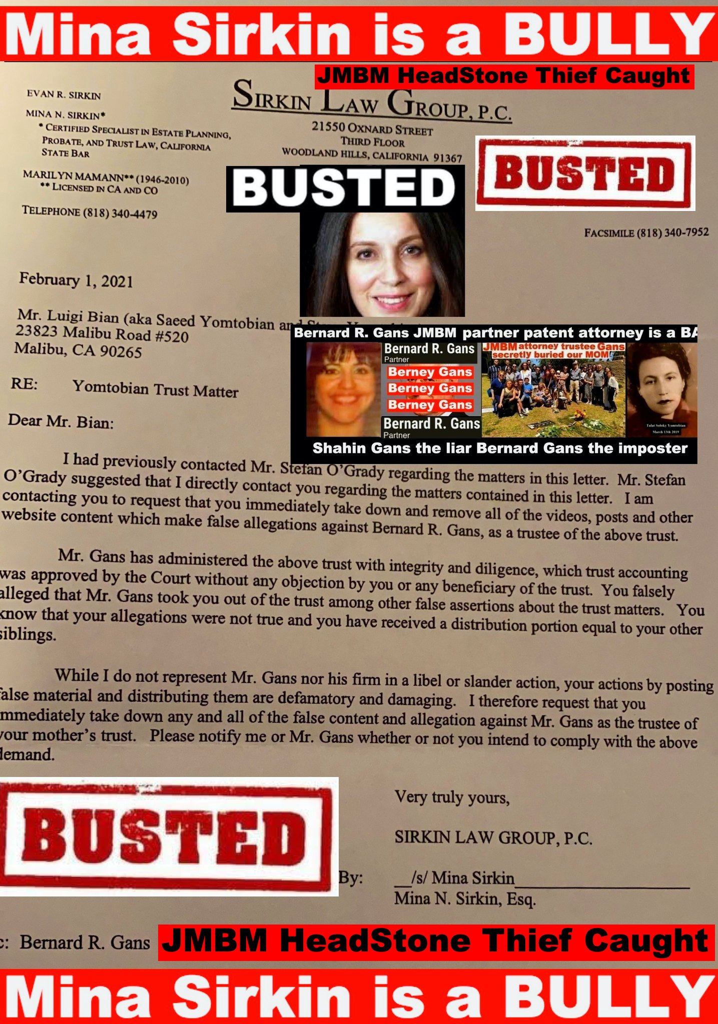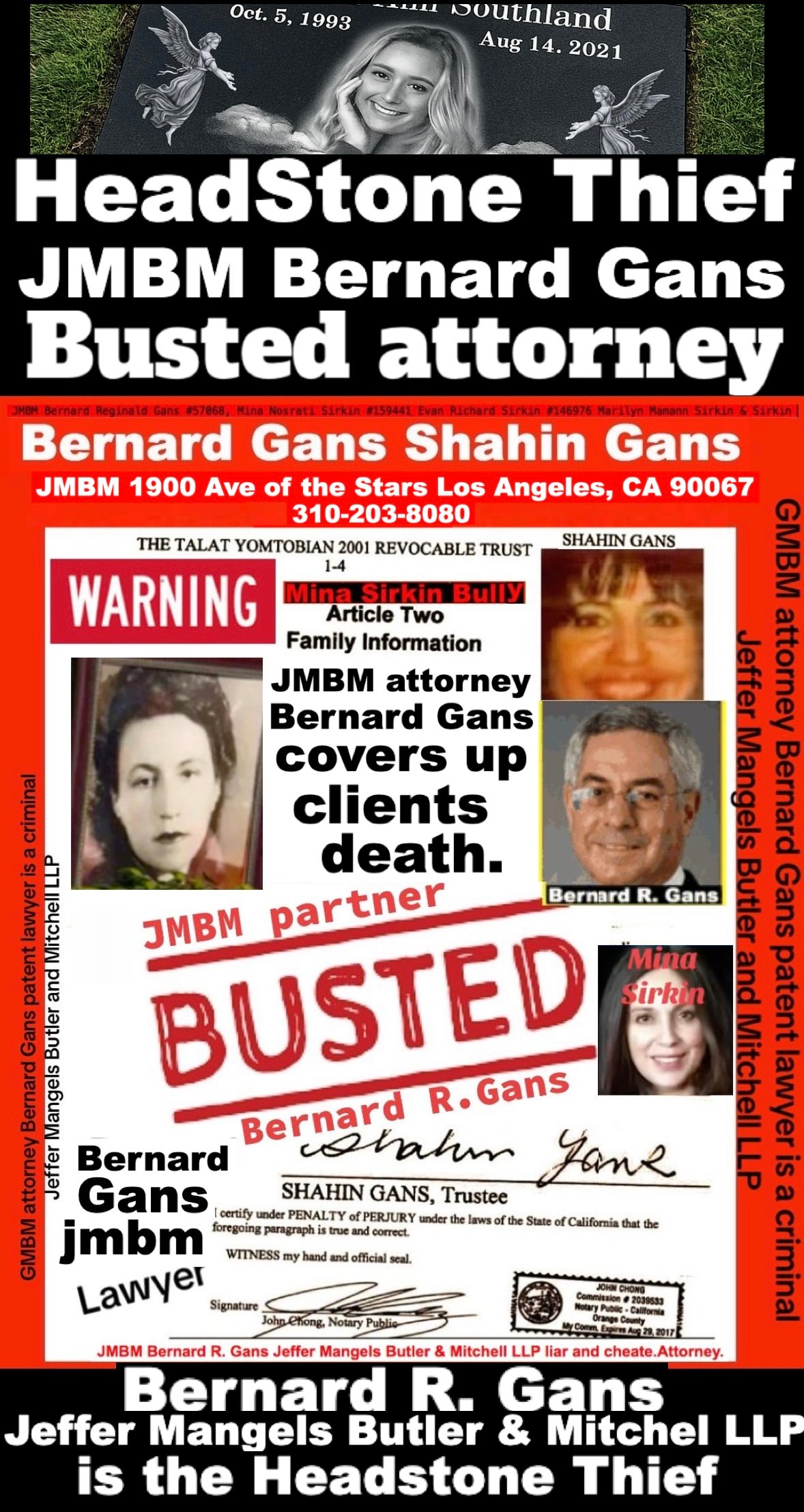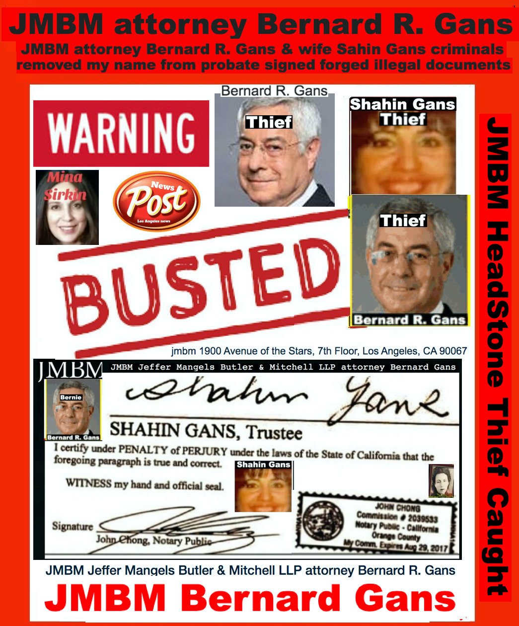 California Business Lawyers Jeffer Mangels Butler & Mitchell LLP partner Bernard gans engaging in criminal acts forging illegal documents.